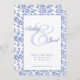 Elegant Blommig Blå Bröllops Spara Datum Spara Datumet
