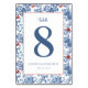Elegant Blommig Blå Kantlinje Bordsnummer