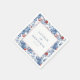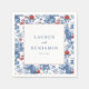 Dessa bröllskapsservetter har ett elegant blomsterarrangemang med en kant av blå och röda rosor, accentuerade med gröna blad på en krispigt vit bakgrund. Designen inkluderar en central fyrkant för anpassad text i ett klassiskt serif-teckensnitt, perfekt för att personifiera din speciella dag. Den traditionella men moderna stilen skapar en sofistikerad och festlig stämning, idealisk för bröllop eller formella evenemang. De detaljerade illustrationerna ger en realistisk representation och förstärker den tidlösa charm som dessa vackert tillverkade servetter utstrålar.