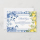 Elegant Blommig Blå och Gul Citron Bröllopsfest Tack Kort