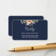 Mörkblått bröllopsregister informationskort med akvarell aprikosblommor och trädgårdslövverk. En enkel men elegant samtida botanisk design inspirerad av boho vintage-stil.