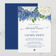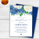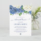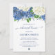 Planerar du en vacker botanisk bröllopsrepetition middag? Ta en titt på vår Eleganta Blommiga Botaniska Bröllopsrepetition Middagsinbjudan. Denna repetitionsmiddagsinbjudan har en akvarell med blå hortensior, vita hortensior, vilda blommor och grönska.