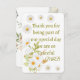 Uttryck din hjärtliga tacksamhet med detta eleganta blommiga bröllop tacksamhetskort. Med mjuka vita och gula prästkragar på framsidan och meddelandet "Tack för att du var en del av vår speciella dag, vi är så tacksamma", och en delikat bukett design med orden "ÄLSKAR ER" på baksidan, är detta kort perfekt för att visa uppskattning till dina gäster på ett varmt och minnesvärt sätt
