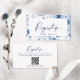 Gör det enkelt för gästerna att ge presenter med detta Eleganta Blommiga Bröllopspresentregistreringskort. Med en delikat vattenfärg blommig design i tidlös blå och vit, innehåller detta kort en QR-kod för snabb och enkel åtkomst till din bröllopspresentlista. En stilren och praktisk tillägg till dina bröllopsinbjudningar, möhippa eller förlovningsfirande, som säkerställer att gästerna kan hitta den perfekta presenten med lätthet.