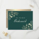 Fråga dina bästa vänner att stå vid din sida med detta vintage bohemiska bröllopsförfrågningskort. Med lyxiga smaragdgröna toner, förgyllda blomaccent och anpassad text på baksidan, erbjuder denna eleganta design ett personligt och tidlöst sätt att ställa frågan: 'Vill du vara min brudtärna?'