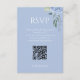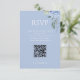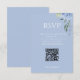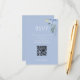 Elegant och stilren blå hortensia RSVP-kort med bifogad blommig design tillsammans med era namn, evenemangets datum, er hemsidas QR-kod och en uppmaning att svara online. Mot en dammig blå bakgrund är detta kort stilrent, elegant med ungdomliga undertoner. Anpassa för att göra det till ert eget.