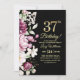 Elegant Blommig Guld 37 Födelsedagsfoto Inbjudningar