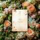Detta eleganta blommiga Spara Datum-kort i en mjuk guld färgskala är perfekt för att tillkännage din kommande bröllop. Med känsliga gyllene blommor och anpassade detaljer som namn, datum och plats, utstrålar denna design romantik och sofistikation. Idealiskt för par som planerar ett destinationbröllop, som i Santorini, Grekland, eller för alla par som söker ett tidlöst och lyxigt spara datum tillkännagivande.