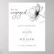 Denna minimalistiska, eleganta svart-vita blomstermönstrade "vi är förlovade"-välkomstskylt för förlovningsfest kan anpassas med din information i stilfull typografi. Designad av Thisisnotme