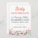 Elegantens blommigt 60 födelsedagskort 60 Dave det platta datumkortet. Meddela den kommande firande på en speciell 60-årsdag med denna charmerande Spara datumkortet. Det här kortet har en mjuk pastellutformning med ömtåliga fjärilshål och ger en sansad elegant för en minnesvärd milstolpe firande. Texten ordnas på ett bra sätt i en kombination av modernt och klassiskt typsnitt, där vikten av detta tillfälle betonas. Perfekt för ge gäster en förhandsgranskning av det glädjande evenemanget till komen, så att de i förväg kan märka sina kalendrar. Njut!