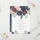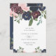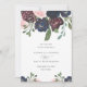 Det här vackra bröllop spara datum-kortet har en fantastisk trendig, marinblått, plommonfärgad lila och vattenfärgade blommor och botaniska löv och löv av grönt. Elegantens blå text lägger till en klassisk tryckning på en vit bakgrund. Kortets baksida har mer blommigt grafik på en passande mörk blått bakgrund.