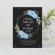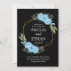 Elegant Blommigt Blåa blommor svart Bröllop Inbjudningar