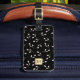 Vår Elegant Blommigt Black och Guld Shiny Monogram Luggage Tag är perfektens val för alla vintagar älskare. Den minimalistiska utformning som har initialer i ett känsligt glansigt guld ram mot känslig bakgrund för blommigten, stort utrymme för kontaktinformation och adress längst bak i bagagetaggen.