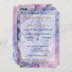 Skönheten hos en vädranetblåsa närmar sig när skuggorna minglar från blå till lavender till rosa till vitt utgör bakgrunden till din bröllopsinbjudan. En guld-ramad låda med ett genomskinligt lagrar präglar vädringens skönhet, så din inbjudan blir lätt att läsa. Bröden och brudgummens namn är i guld eftersom de "begär heder av er närvaro vid bröllop firande". Svart text används för resten av inbjudan. Kortet kommer i den finare-del som ses här liksom i andra och den vanliga rektangeln. Kortets baksida är nära den sammanfogade färgen i blommarna för vattenkraft.