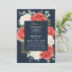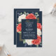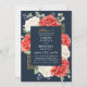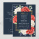 Ställ in scenen för en minnesvärd händelse med den här muslimska bröllopsinbjudan till Röda och vita Blommigten-Grönten. Den här inbjudan till bröllop med lush och lyxig blommigt innehåller ett ram av rött och vitt ro och blåbär mot blå bakgrund med en QR-kod för onlinens OSA. Det är perfekt för en elegant firande. OBSERVERA: guld som ingår i denna design är INTE äkta folie.