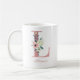 Elegant vattenfärgskaffe blommigt mugg, monogrammat med ditt namn och initalt. Blommigten brev L är designad i ro rosa glitter och har en rosa- och elfenbensbukett av blommor och grönska. Mallen är konfigurerad så att du kan lägga till ditt namn i ett dammigt skript med rosa. En vacker gåva för alla kvinnor och en verkligen bröllopsförmån eller en keepsaké för brudgummar och brudens sida.