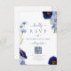 Svarskort för elegant vår och sommarblått blommigt bröllop OSA med QR-kod för bröllop webbplats. Unika handmålade blommigtar för vattenfärger, inklusive jokblommor med vackra romantiska skript för elegant, inklusive briden och groommonogrammet initialer för att tillsammans med bröllop anpassa svarsdatum och webbplatsuppgifter, inklusive QR-kod för onlinens osa med hjälp av mallarna för enkel till använda. Skuggblommor inklusive kornblommor, poppies, cosmos och glöm mig inte med ömtålig bladgrafik av konstnären Catherine Sweetman. I paletten färg ingår kornblommeblått, dammblått, blått, marinblått, lila och grönt. Idealisk för en botanisk trädgård eller utomhus vår sommar bröllop. Sök efter matchande objekt i elegantens sommarpaket med blommigt blå bröllop