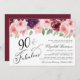 Elegant Blommigt Burgundy Rosa 90:e Födelsedagsfes Inbjudningar