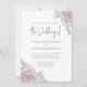 Den här designen har elegant dammig ro blommigt rosor, botaniskt grönt löv blad, kalligrafi av trendig snyggt, modernt minimalistiskt typsnitt, sommarbröllop vid vintern vår, romantisk trädgård stil design, en naturträdgård vid grått rosa grönt, en chic elegans av ro blommor, traditionell bröllop-formulering med söt vackra vattenfärg vid bröllop