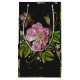 Elegant Blommigt Embroidery Mönster på Black Background - Ett vackert brodery mönster med vintage känner sig stolt över en underbar vild ro i skuggor av rosa, grönt löv och en fjäril som ligger nära.