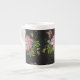 Elegant Blommigt Embroidery Mönster Black Backgrou Benporslin Mugg