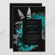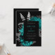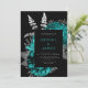 Elegant Blommigt för Moody Mörk Teal Silver Bröllo Inbjudningar