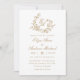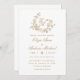 Elegant Blommigt Guld Monogram Vapensköld Bröllop Inbjudningar