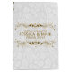 Elegant guld tones blommigt snöre-design över vit blommigt, mönster, anpassade-mall. Guld-typsnittet färg föreslås. Om du behöver hjälp med att anpassa någon av mina designers kontaktar du ArtOnWear-designern. Kostnadsfri textformatering med hjälp av direkthjälp tillgänglig på begäran.