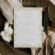 Elegant Blommigt Guld & White Bröllop Bord Middag Meny