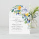 Elegant blommigt gult vit blå båge bröllop inbjudningar