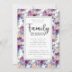 Elegant Blommigt Hand Lettered Script Family Reunion-inbjudan med vackra, dramatiska och lila blommigtar med handskriven stil-typografi. Med lila tillbaka kan du emellertid enkelt ändra den till spelar ingen roll skuggning som du väljer i designen verktyg.