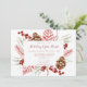 En elegant christmas blommigt helgdag öppen inbjudan. Det här christmas-huset har en elegant julmas blommigt ram med eukalyptus, röda bär och gräs-koner. All text på kortet kan anpassas.