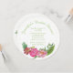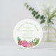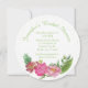 Unik inbjudningskort för möhippan utförd i runda kort lagrar och vit bakgrund. Bilder av liten grönt polka dots springa utanför kant och söt vattenfärgsverk av rosa och korallblommor dekorerar grund. Anpassa gröntens färgad för möhippans händelse. Det finns samordning av pappra blöjor, tallrikar och kopp.