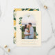 Vår citronchiffrering av bröllop spara datum-fotokortet fångar sofistikering och elegans med vårt ursprungliga, handmålade vattenfärgscitron träd med gult blommar, blommor och bladlöv. Skjutor av rispcitrusfrukter är parade med djupa gröntar för att skapa denna färska utformning av bröllop. Ett foto med eleganten Arch ram för att lägga till ditt speciella foto. Alla blommigtar och teckningar är noggrant handmålade av oss, för att skapa våra unika minnesvärda bröllop-mönster. Anpassa färg för text, teckensnitt och bakgrund till kostym om designinställningarna.