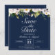 Elegant Blommigt Navy Blue Bröllop Spara Datumet