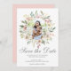 En elegant cirkel ram av vattenfärgade rosor och elfenbensgrädde ro ram denna vackra sommar Spara datumfotoinbjudan. De botaniska sprickorna av sage grönt eucalyptus löv dekorerar mitt i persikoarrayen med blommor ovanför det vackra kursiva skript. Det tillbaka till det här kortet tillför en romantisk beröring. Dessa känsliga inbjudningskort är perfekt för en underbar trädgårdsceremoni med en mottagning utomhus. Lägg till ett eget fotografi av förlovningen.