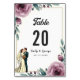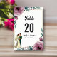Det elegant vattenfärgen blommigt bröllop bordsnummer är perfekt för ett modernt bröllop. Den romantiska designen har en vattenfärgsfärgad elegant ram med en blommigt- och trimbild och svart kalligrafi på vit bakgrund.