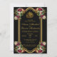 Den här blommigten i elegant har en guld ram som omges av beige och burgundy ro. Den har också svart bakgrund och färg-teckensnitt, som båda kan ändras i färg om du vill. Den omvända sidan visningar också det gyllene ram, ro och Bride och Grooms namn.