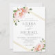 Elegant Blommigt Rosa Guld Geometric Bröllop Inbjudningar