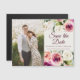 Inslag: blommigt ram med botaniskt inslag av ro, ponnyer och grönt; livligt manus och chic serif typsnitt, vågrät orientering. Färg: Fuchsia, shock rosa, lila, plommon, mullbär, rosa, , persika, vit, benvit, myntvit grönt, större grönt, sage grönt och grönt för jägare. Teman: modernt, klassiskt, inspirerad vintage, elegant, botaniskt, blommigt, trädgård, vineri, utomhusbruk, bröllop, vår, sommar, vismiskt. Samling: Elegant Blommigt Ram Rosa Lila Peach White. Produkttyp: Spara datum magneter