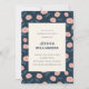 Gratulera till student med inbjudan till studentfest om elegantens blommigt. Den här snyggten har en marin blå bakgrund med mjuka blommor, och kombinerar modern minimalism med en viss vintage charm. Textrutan anpassade innehåller utrymme för händelseinformation, skapar perfekt för firande för högskoleexamen och högskoleexamen. Anpassa till namn, klassår, plats och OSA i student.
