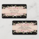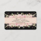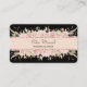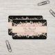 Det här är en mycket elegant, ett affärskort för professionellen för henne som verkligen uppmärksammar! En övre och grund gräns av blek rosa ros och mjuk grönt lämnar ram din anpassningsbar i mitten. Texten placeras på en banderoll för blek rosa som är infogad med rosa faux glitter för att lägga till gnistra. Allt placeras på en dramatisk svart bakgrund. Kortets baksida har samma bild av blommigten gräns, med mer fält anpassningsbar i mitten. Glädjande!