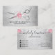 Elegant blommigt silver rosa scissers frisör visitkort