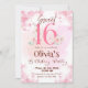Fira en milstolpe 16:e födelsedag med den här eleganten och charmerande inbjudan. Den här inbjudan är en perfekt för ett sweet sixteen firande. Den innehåller delikata blommigtar för rosa och en mjuk, romantisk design. Det vackra "Sweet 16"-manuset och botaniska accents skapar en sofistikerad men inbjudande känsla. Anpassa med all information om party för en oglömbar händelse!