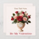 Gör någons dag extra speciell med elegantens Alla hjärtans dagskort. Kortet har en mjuk bakgrund för rosa av blek, där bild i vas visar en blandning av vackra röda och rosa ros. Det enkla budskapet "Bli min Valentine" nedanför bild lägger till romantisk charm. Ovanför utformningen av blommigten finns det utrymme för din egen anpassningsbar, en möjlighet att anpassa kortet med ett meddelande som bara är höger. Kortets baksida är vanlig rosa i bleken, med gott om utrymme att lägga till dina egna handskrivna känslor. Skicka kortet som en trevlig gest för att göra ett romantiskt intryck.