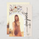 2 foton - Elegant Blommigt Student avisering. Den här inbjudan till snyggt och modern studentfest innehåller fantastiska, handmålade vildblommor med vattenfärg som ordnats som ett vackert kalligrafiskt skript för bouquet och elegant. Baksidan innehåller ett andra foto från studenten för anpassning. Hitta matchande produkter i samlingen Boho Wildblomma Studenten.