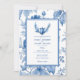 Elegant Blommigt Toile Periwinkle Blue Vapensköld Inbjudningar