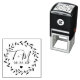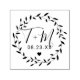 Elegant gummi frimärke med enkla cirkulära löv med modern manustypografi för initialer och sanserif för datumet. Berätta om du behöver hjälp eller har speciella förfrågningar.