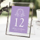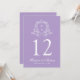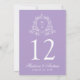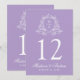 Lägg till en försiktig charm till din bröllopsmottagning med de här bordsnumren för lavender blommigt vapensköld, och visa parets initialer inom en känslig vit vapensköld. Mittpunkten markerar bordsnumret, medan datumet namn och bröllop visas nedan i ett elegant vitt skript - perfekt för lavender bröllop, romantiska ceremonier eller vår bröllop. Kortet mäter 5" x 7". Redigera varje bordsnummer individuellt och lägg till dem i kundvagnen för att säkerställa en mjuk beställning processaa.