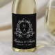 Elegant Blommigt Vapensköld Monogram Black Bröllop Vinflaska Etikett